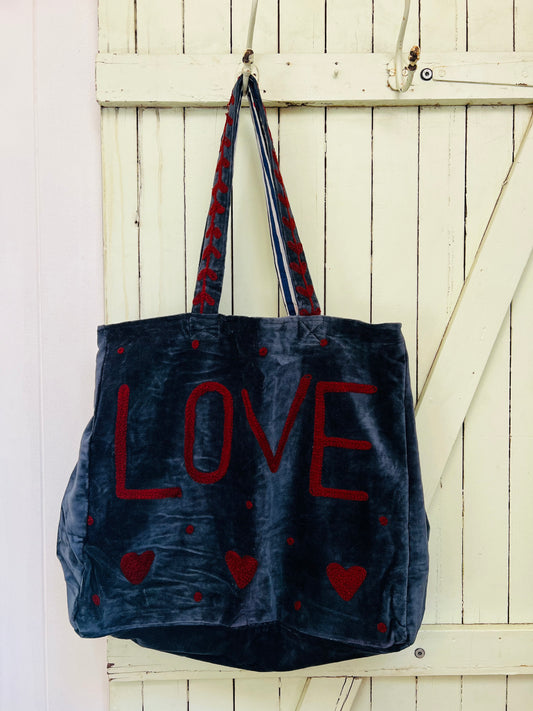 1) Velvet Carry all bag - Blue/Deep red