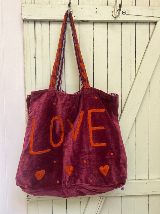 1) Velvet Carry all bag - Pink/Burgandy