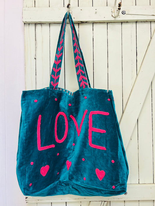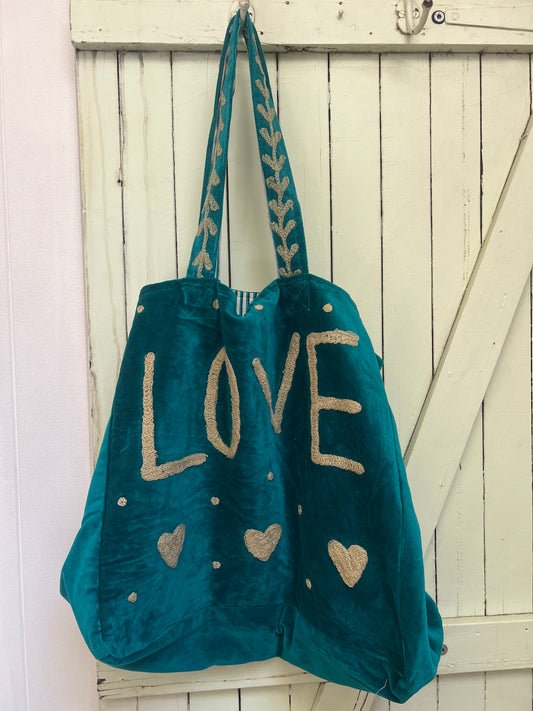 1) Velvet Carry all bag - Turquoise/Cream