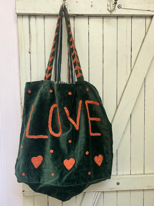 1) Velvet Carry all bag - Green/Orange