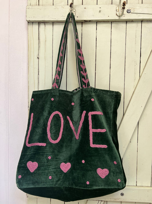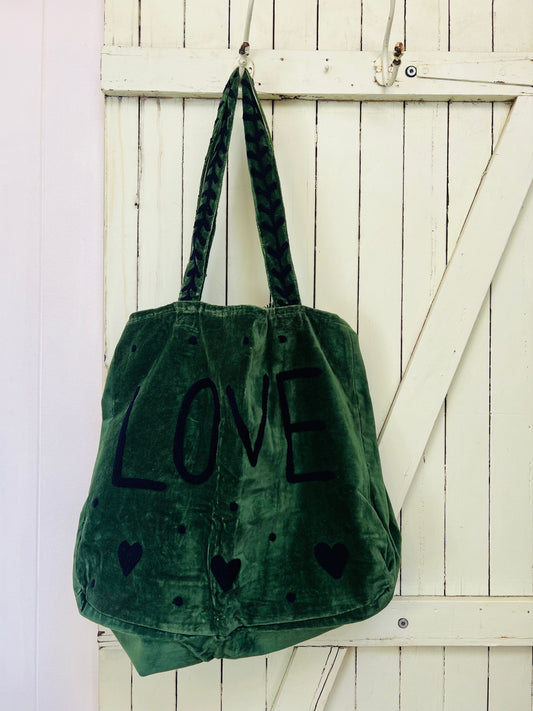1) Velvet Carry All bag - Green/Dusty pink