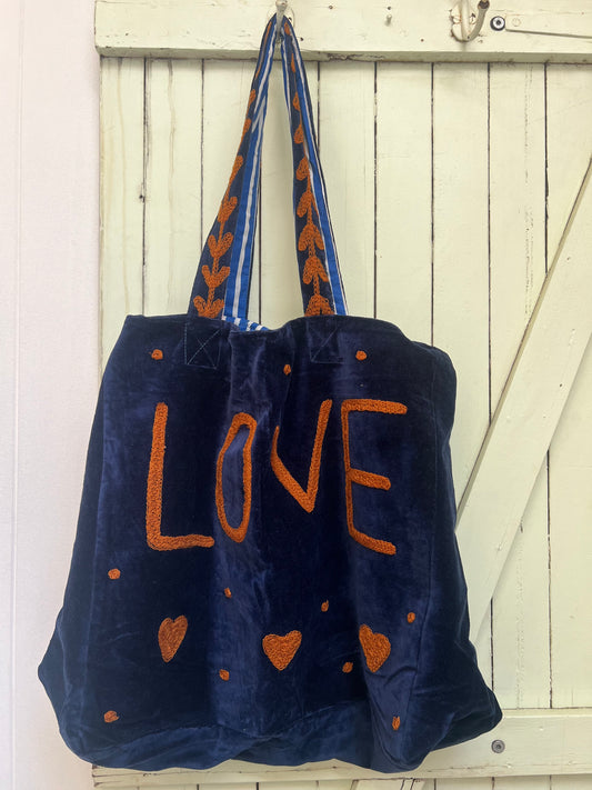 1) Velvet Carry all bag - Royal Blue/Orange