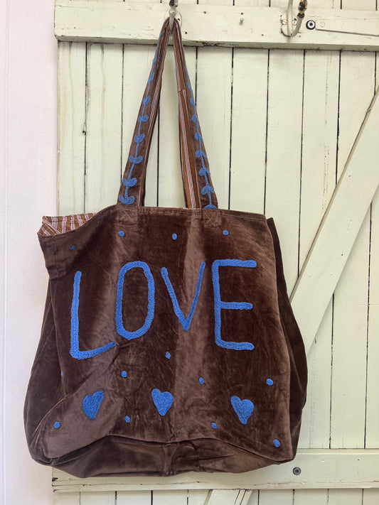 1) Velvet Carry all bag - Chocolate/Blue
