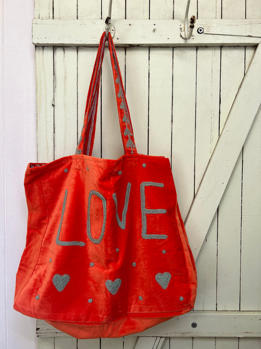 1) Velvet Carry all bag - Orange/Cream